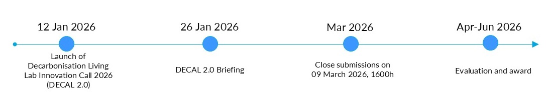 The JTC Decarbonisation Living Lab Innovation Call 2026 (DECAL 2.0) invites solution providers to propose innovative solutions and technologies to improve the sustainability performance of developments and reduce carbon-footprint. Shortlisted solutions meeting the eligibility criteria would be eligible for funding, with opportunities for product development and test-bedding at JTC’s developments.